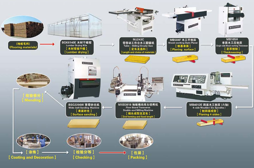 Solid wood floor board production line process flow diagram