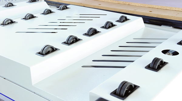 ◆上料滾輪裝置,減小板材與臺(tái)面的摩擦,保護(hù)板材表面。