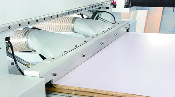 7. 推料裝置:簡捷高效,推料同時(shí)二次吸塵,確保臺(tái)面無粉塵;